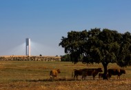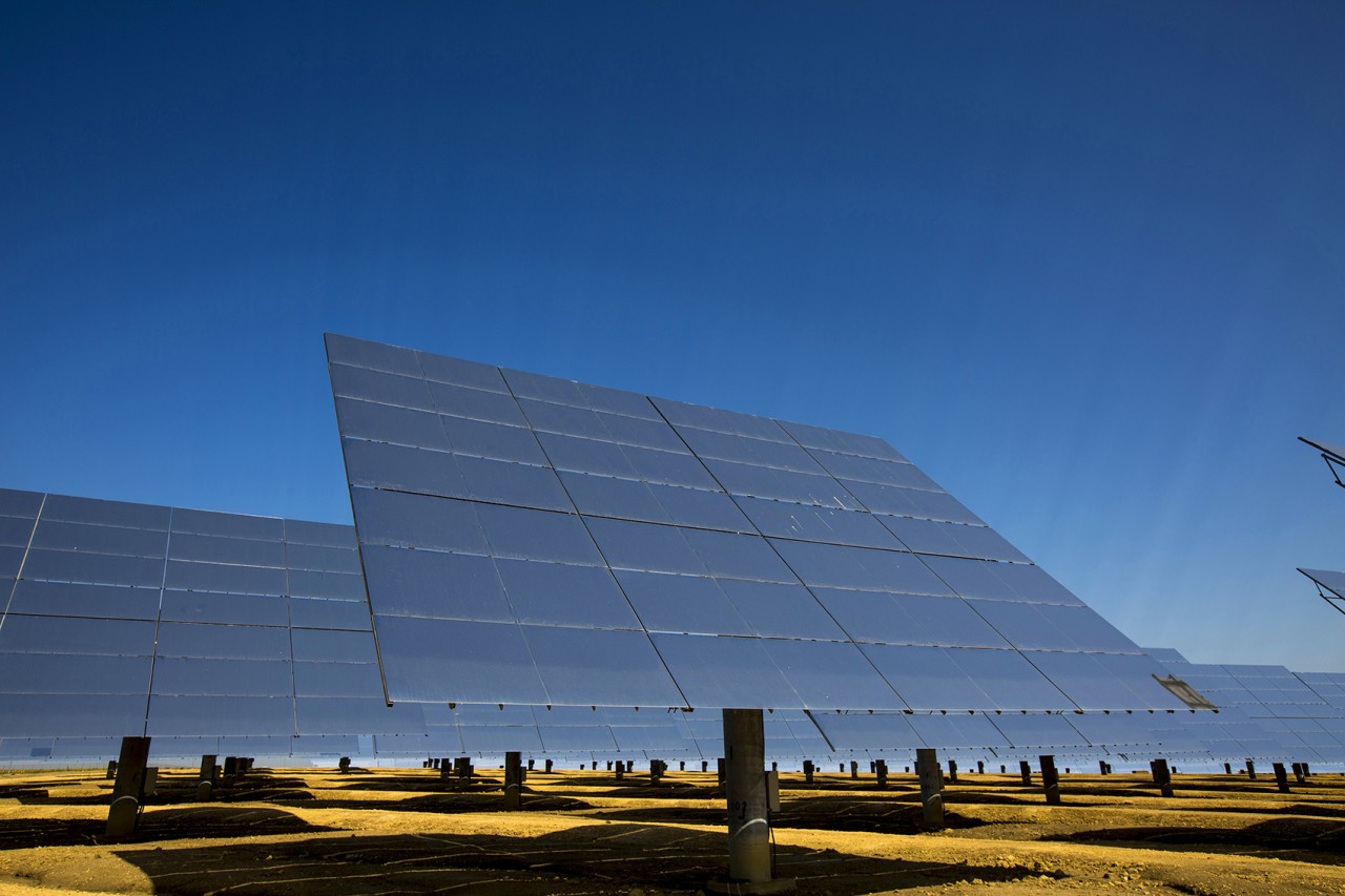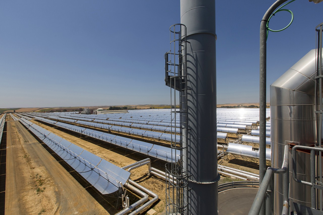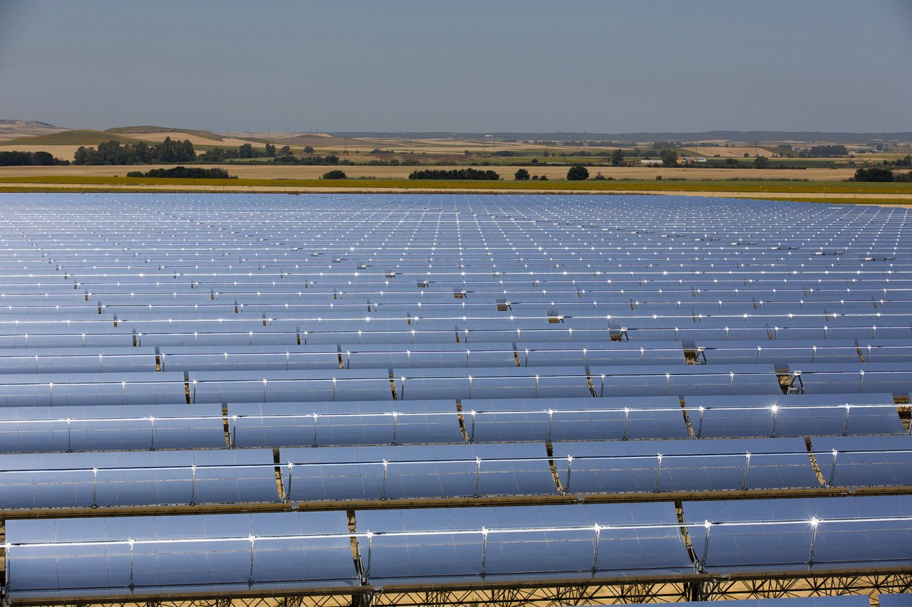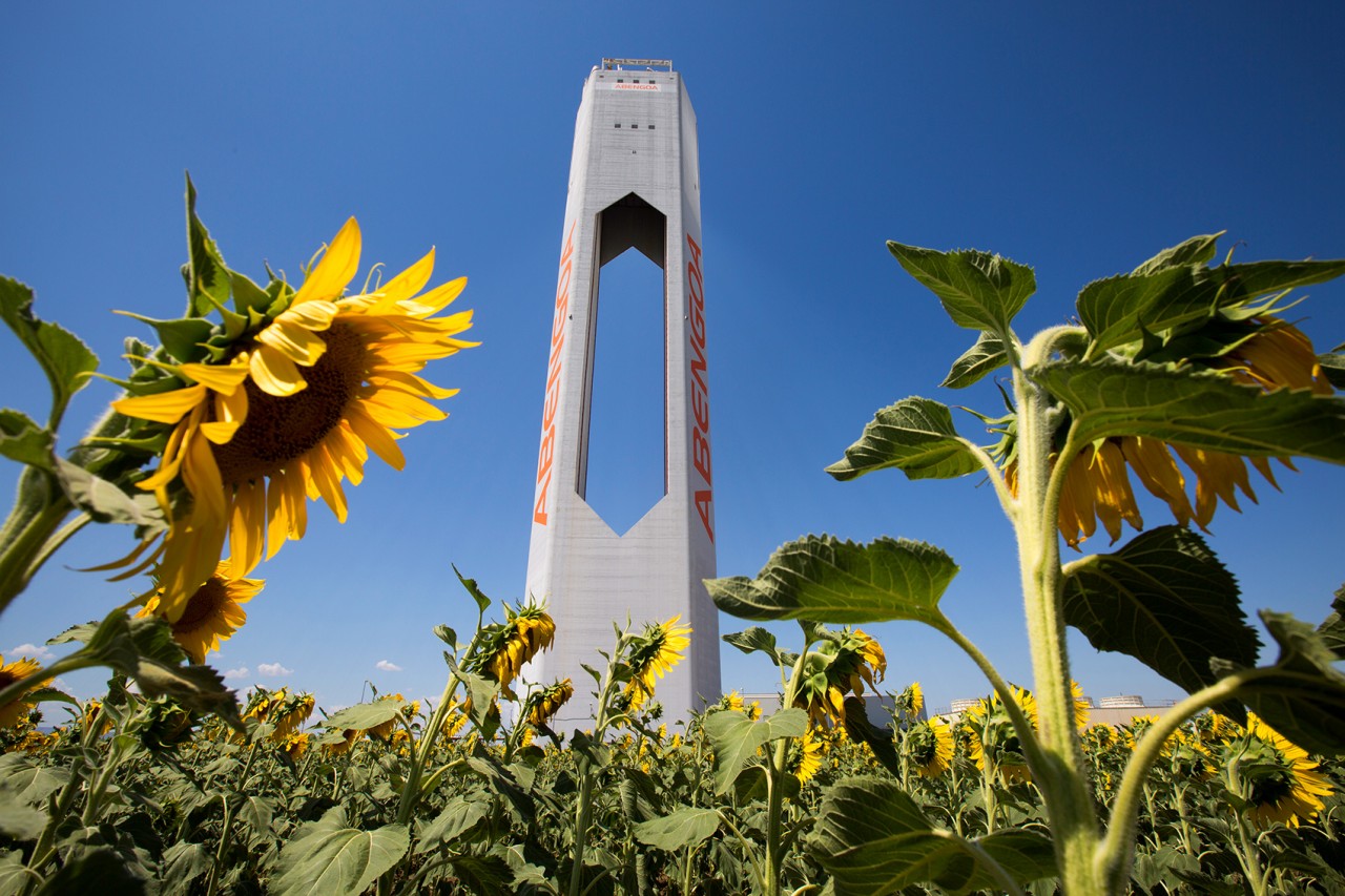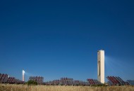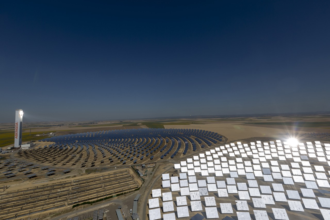 Abengoa’s solar towers in Sanlucar La Major, near Seville, Spain, capture solar radiation using a set of dual-axis mirrors. By tracking the sun they concentrate reflected sunlight onto heat exchangers in the tower’s top. The steam produced drives turbines to generate 20 MW of electricity, enough to power 10,000 homes.