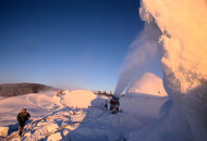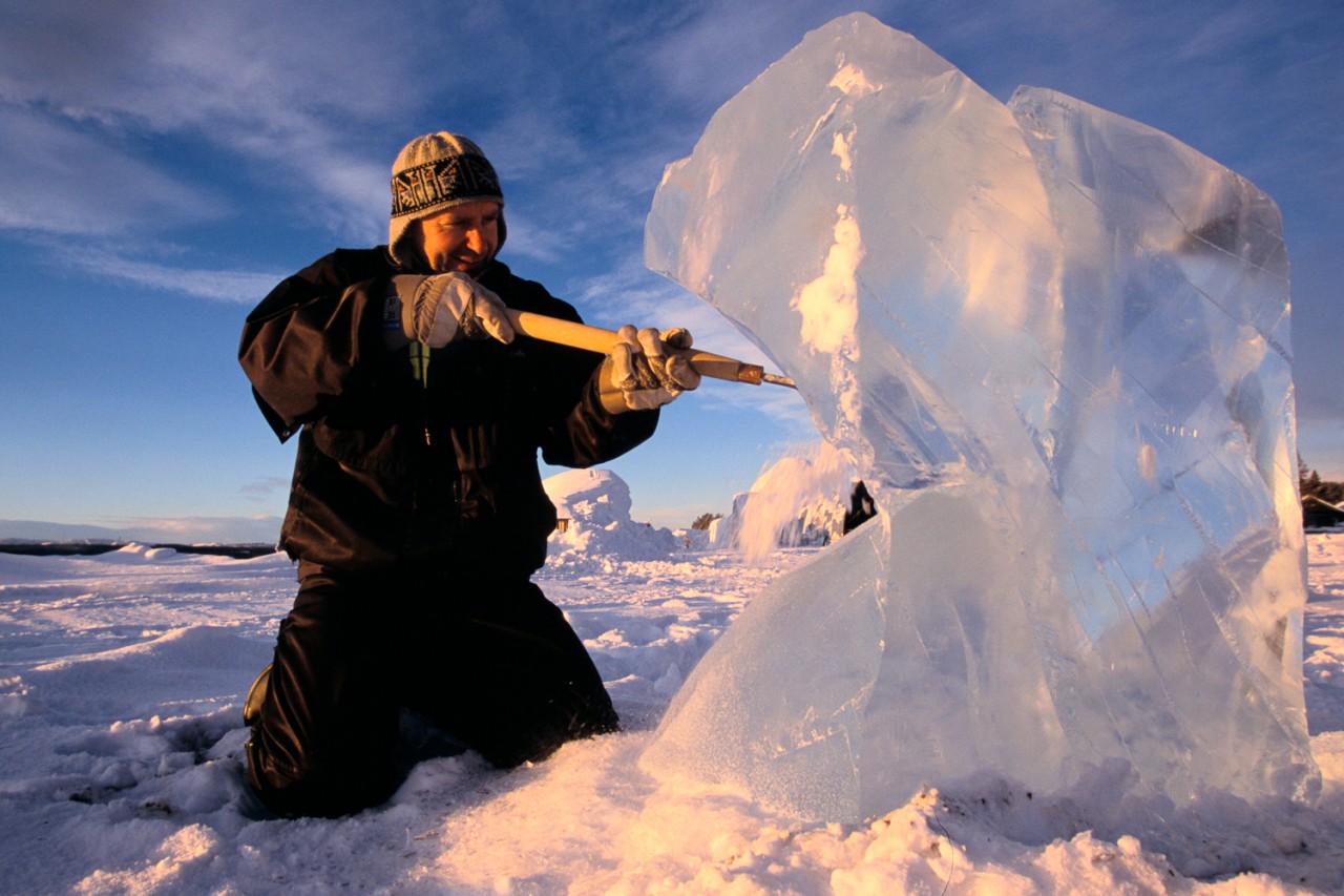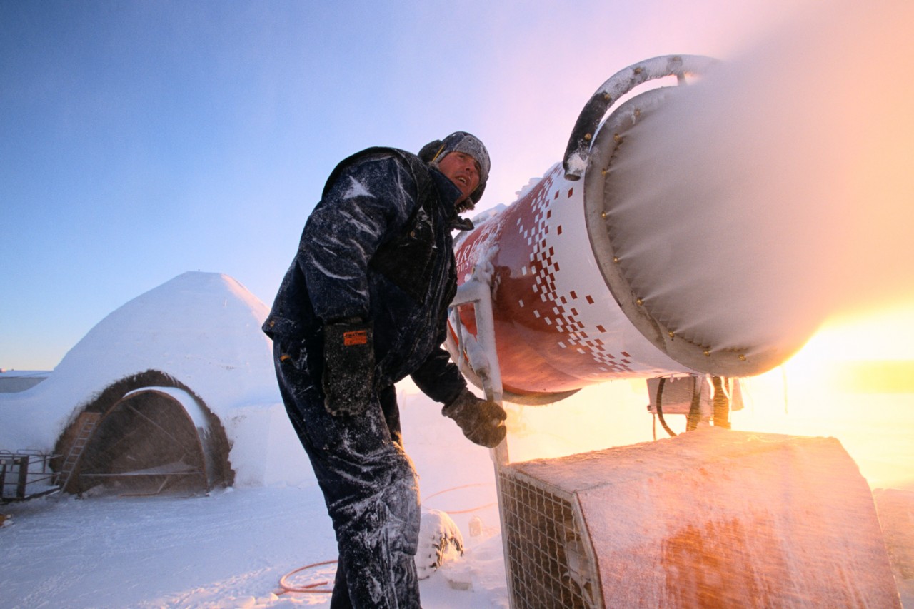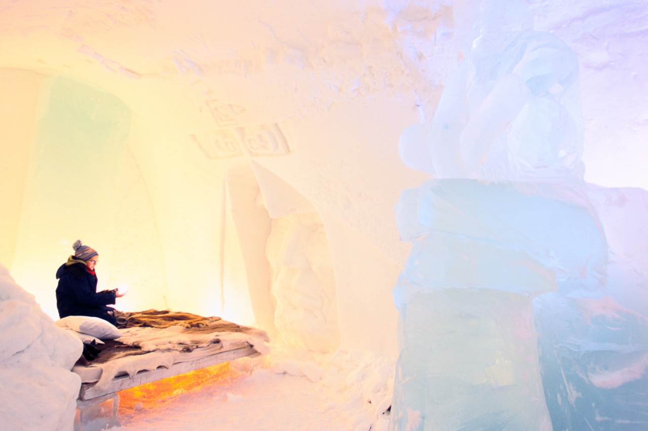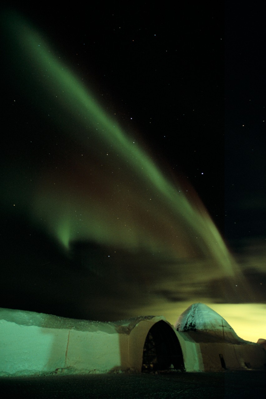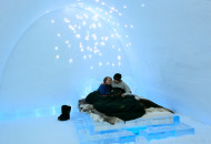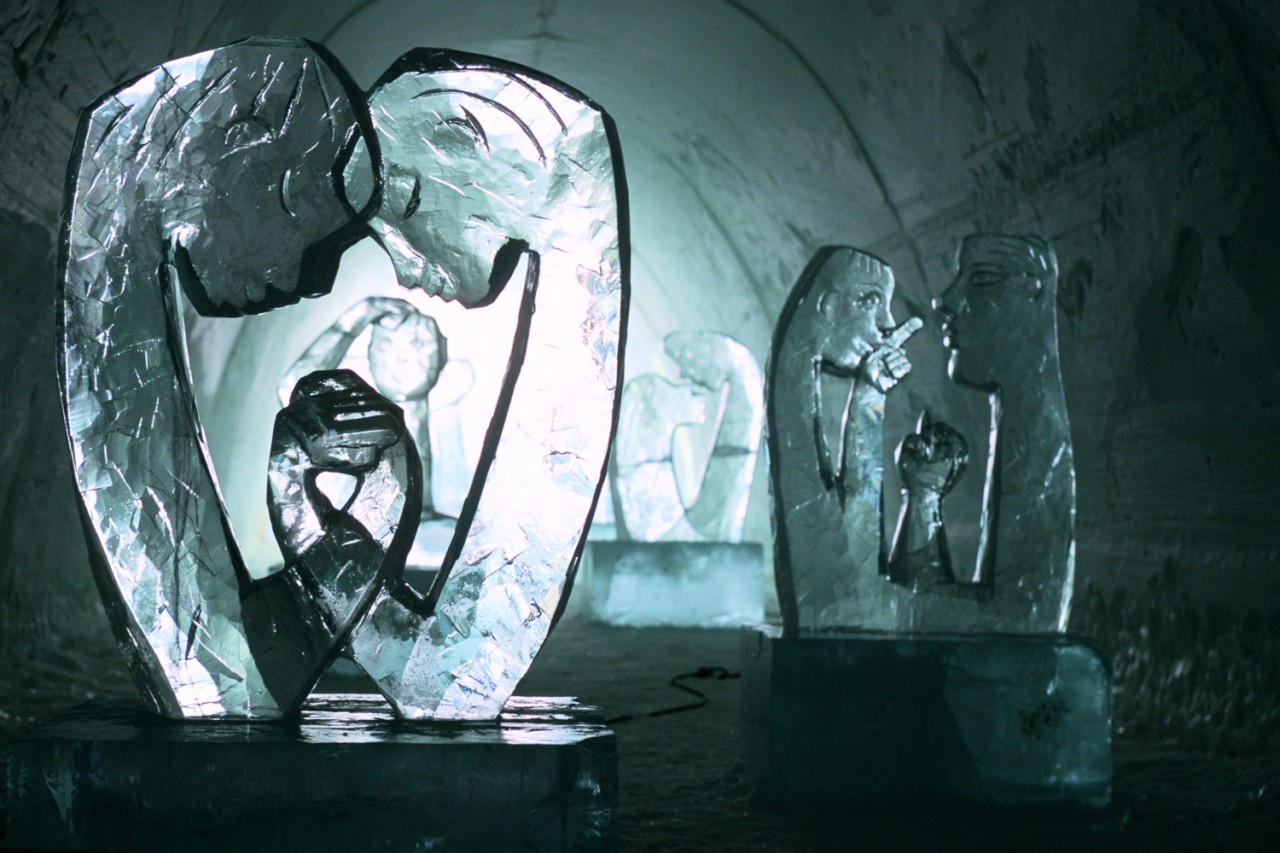 In Sweden, 200 km north of the Arctic Circle on the banks of the Torne River, building work starts each November on the construction of the Ice Hotel. Using snow canons and heavy equipment snow is moulded over vaulted steel forms that are removed two days later once the snow and ice have set. A complex of rooms and suites is made in this way then given over to sculptors to create unique environments.